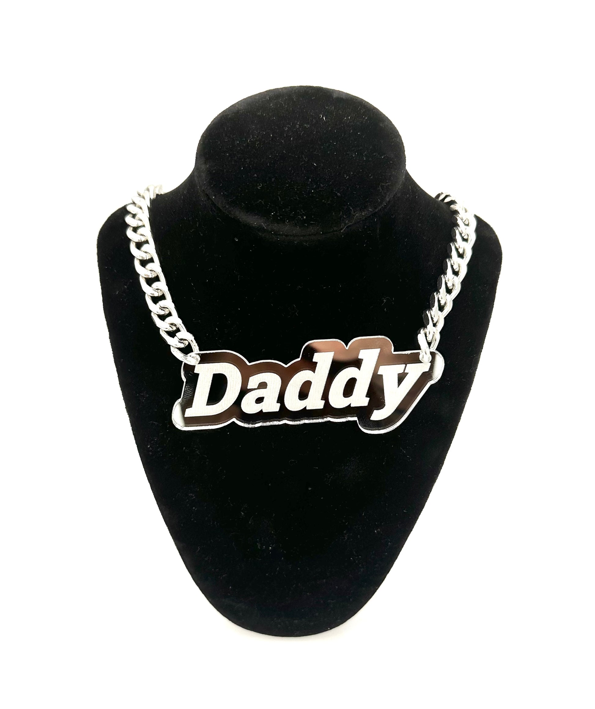 Acrylic Mirror “Daddy” Necklace available in (3) different colors.