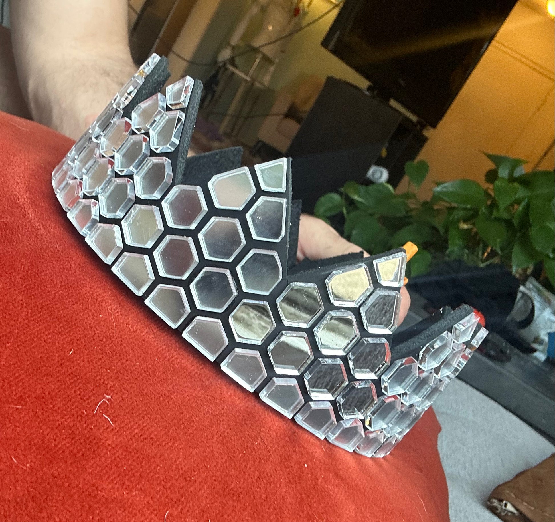 Silver Honeycomb Mirror Crown on Black